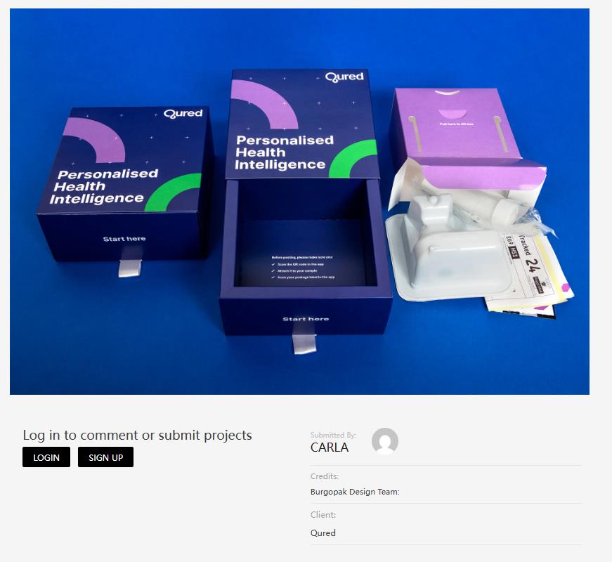 Burgopak为预防医疗公司Qured设计了一款便捷的血液采集设备及回寄邮寄包装。Qured的Tap® II血液采集设备采用比睫毛还细的微针,从上臂采集血样,使得在家采血变得既无痛又简单。采集完成后,血样会被送到Qured的实验室进行分析。